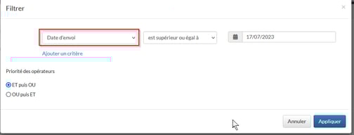 Vous pouvez aussi filtrer la liste des factures en utilisant la date d'envoi :