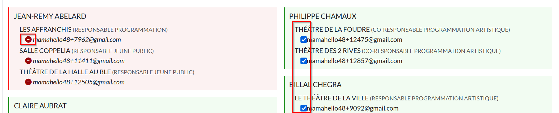 • les structures ayant plusieurs adresses e-mail (mails de structures ou de contacts confondus)