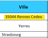 Si vous disposez d'une colonne "Ville" contenant les cedex, un traitement automatique se fera lors de l'import pour distinguer les deux informations. Cette donnée peut aussi figurer dans une colonne dédiée.