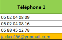 Exemple, dans la colonne ci-dessous, en important ces éléments sous "téléphone", le mail jackcc456@yopmail.com ne sera pas importé, car Orfeo opère un contrôle sur le format de la donnée.