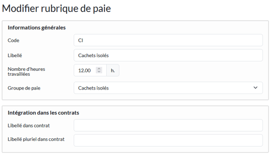 - Libellé dans contrat : permet d'adapter le nom de la rubrique de paie à son usage dans les contrats