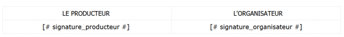 - sélectionnez les champs de fusion Votre bloc de signataire et Bloc de signature contractant pour les insérer aux bons emplacements dans votre modèle