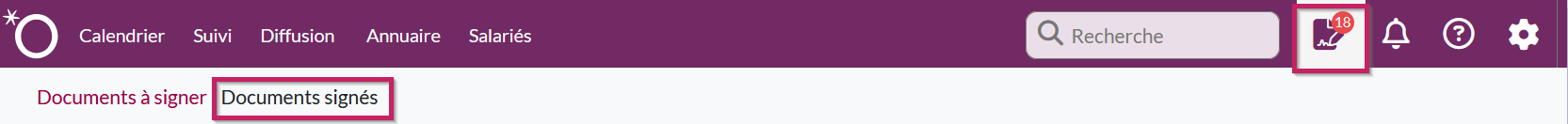 Vous pouvez suivre l'ensemble de vos demandes de signature électronique à partir d'une seule page : le parapheur et suivi des documents signés. Cette page affiche l'ensemble des documents ayant fait l'objet d'une demande de signature électronique.