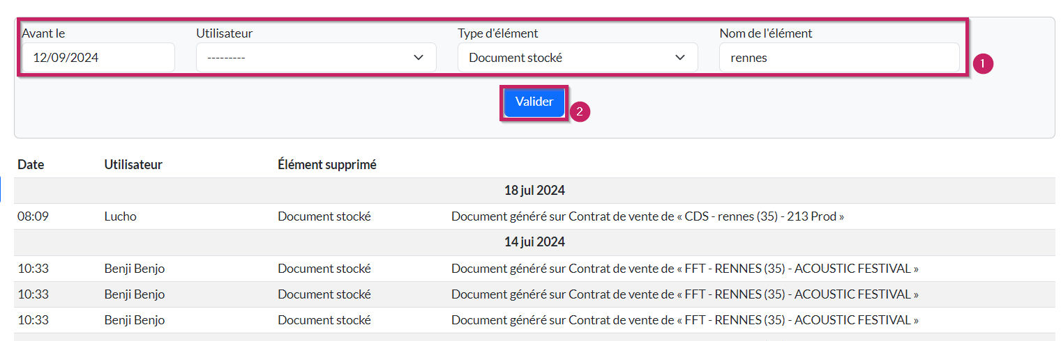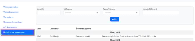 Les administrateurs de votre espace Orfeo peuvent consulter l'historique des suppressions effectuées par les utilisateurs.