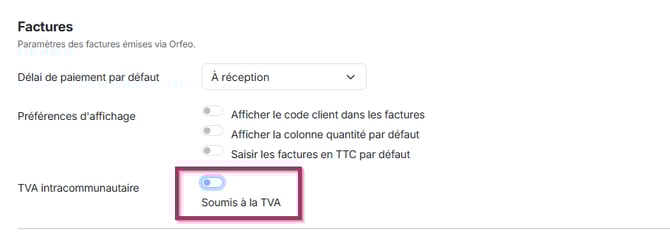 - dans le bloc Factures, décochez l'option Soumis à la TVA