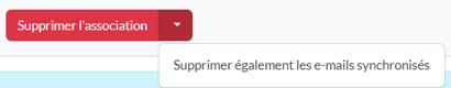 - cliquez sur Supprimer l'association. Vos e-mails échangés avec vos contacts ne s'afficheront plus dans Orfeo, mais ils ne seront pas supprimés de votre boite de réception habituelle. Pour supprimer les e-mails synchronisés dans Orfeo, cliquez sur Supprimer également les e-mails synchronisés