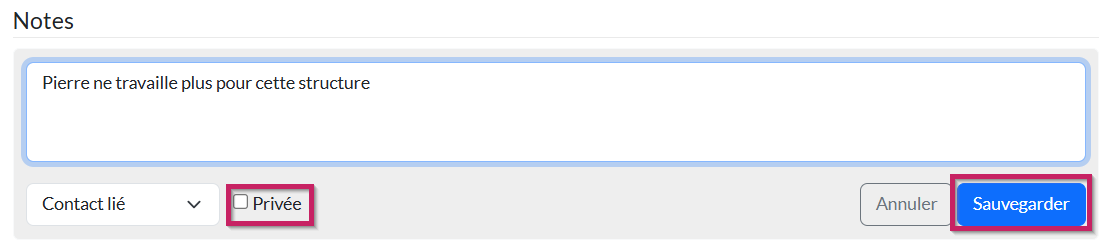 De plus, cette note demeurera même si vous archivez la structure ou le contact dans le cas d'un changement de poste.