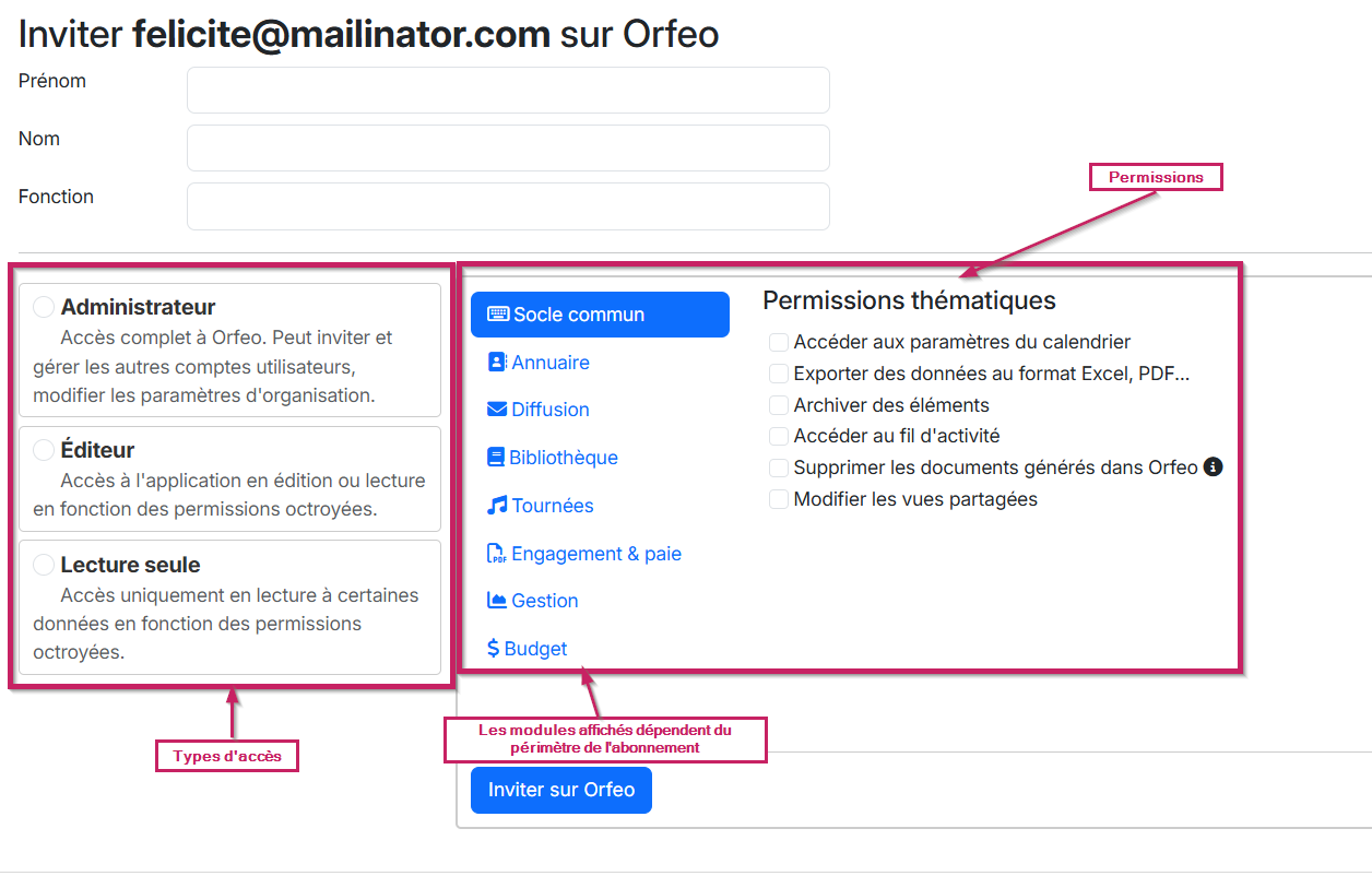 * Pour les accès "invités", consultez le tutoriel Créer un compte Orfeo pour un salarié.