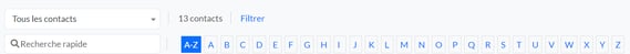 Quand un filtre est actif, la liste n'affiche que la sélection correspondant à la recherche effectuée :