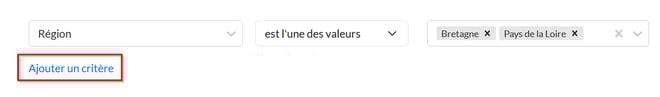 Certaines recherches imposent de mobiliser plusieurs critères. Il suffit pour cela de cliquer sur Ajouter un critère, une fois le premier critère défini :