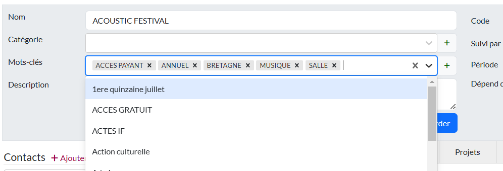 Les mots-clés se créent depuis les paramètres ou depuis les fiches de votre annuaire si vous disposez de la permission pour le faire.
