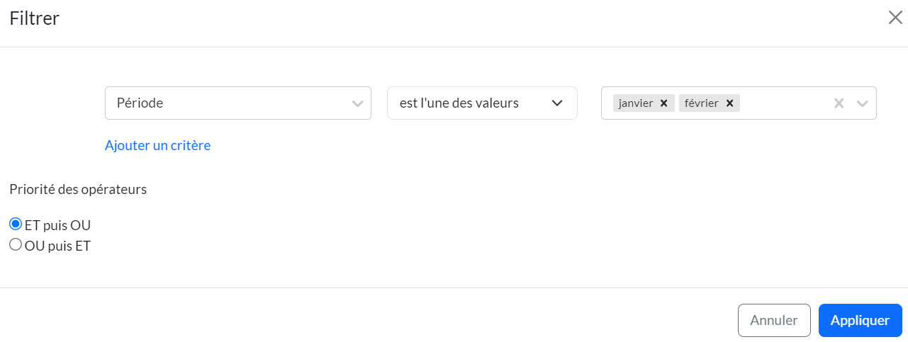 Il est possible de filtrer la liste de vos structures en fonction d'une période de programmation. Il est possible de filtrer sur un seul ou plusieurs mois :