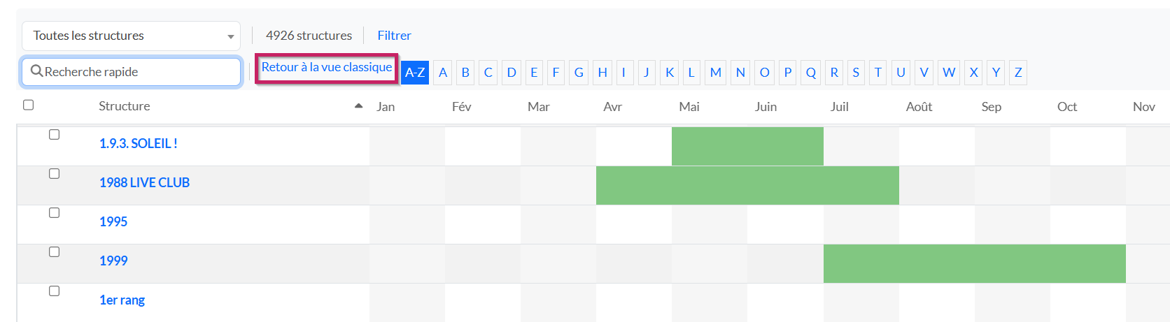 - cliquez sur Retour à la vue classique pour revenir à la liste de vos structures
