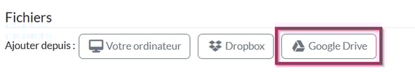 - cliquez sur le bouton Google Drive dans le blocs Fichiers en bas de page pour ouvrir une fenêtre Google Drive