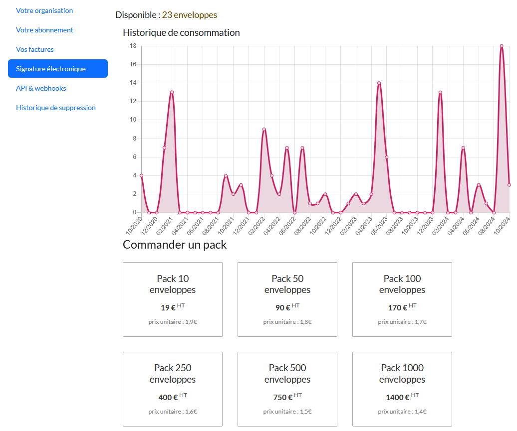 - Si le contrat n'a pas été modifié et que vous renvoyez la demande de signature (ex : relance par e-mail), le pack n'est pas débité une seconde fois