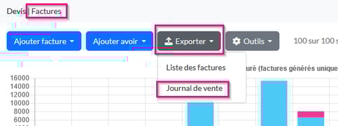 - cliquez sur le bouton Exporter et choisissez Journal de vente