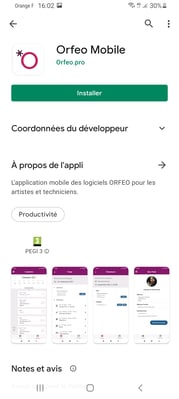 Pour télécharger l'application Orfeo sur Android, vous devez ouvrir le "Play Store" de Google et cherchez "Orfeo" depuis le moteur de recherche